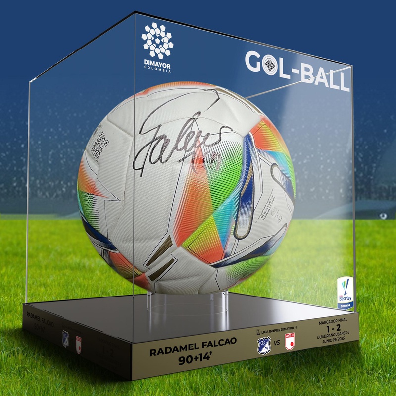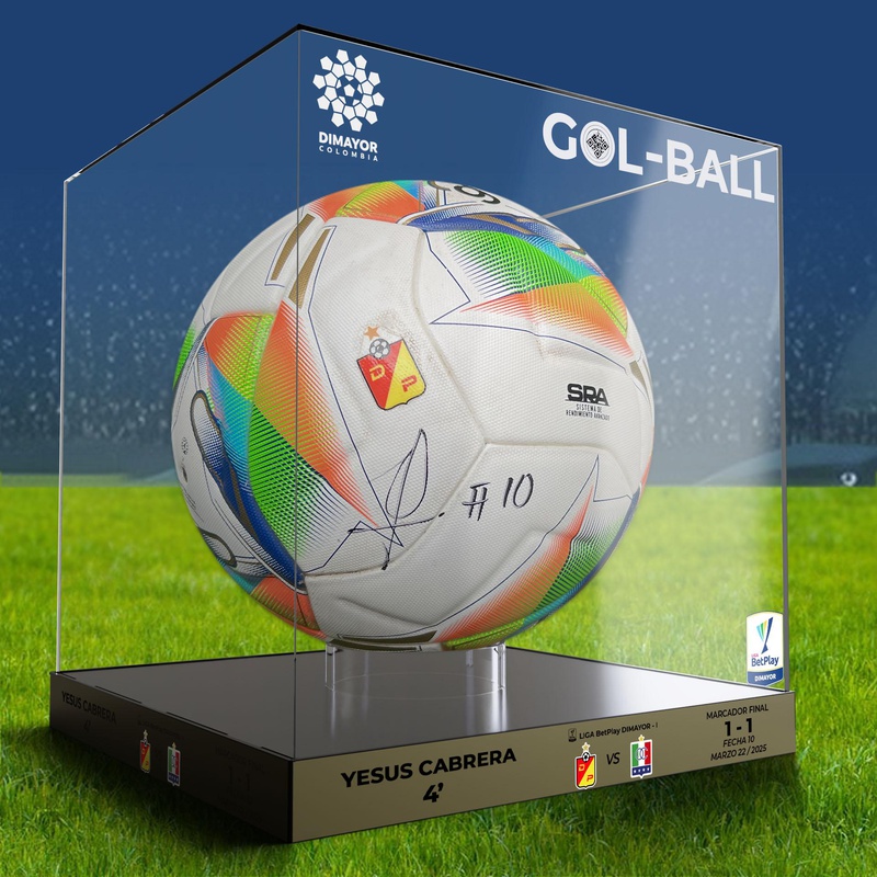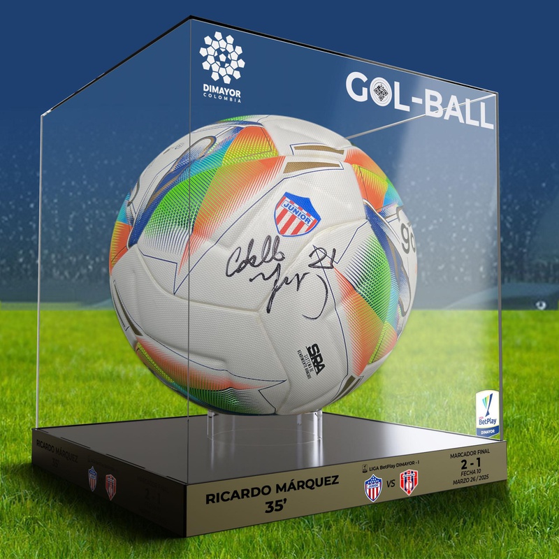 Balones oficiales del partido.Certificación: Certificados como balones oficinales de Partido, edición única.• Firmado por jugadoresPRESENTACIÓN DE LOS BALONES• Caja exhibidora de acrílico:• Medidas: 31 cm (alto) x 28 cm (ancho y fondo)• Base: Acrílico negro• Cubierta: Acrílico transparente• Base interior para soporte del balón (acrílico transparente)• Sticker tornasol con información del partido correspondiente a ese balón (fecha, equipos, resultado) -